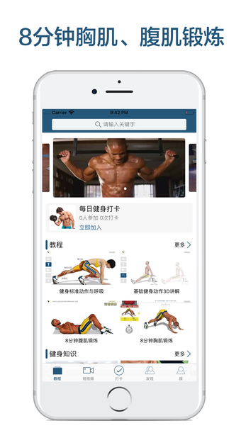 8 นาทีฟิตเนส - คอร์สการออกกำลังกายกล้ามเนื้อหน้าอกและหน้าท้อง เป็นแอปพลิเคชันที่มีอยู่บนแพลตฟอร์ม iPhone พัฒนาโดย Xu Dai มันจะให้คุณได้รับวีดีโอสอนการออกกำลังกายพื้นฐานและกล้ามเนื้อที่เกี่ยวข้องอย่างครบถ้วน ด้วยการซื้อใบอนุญาตเวอร์ชันเต็ม ผู้ใช้สามารถเข้าถึงคุณสมบัติต่างๆ รวมถึงคู่มือขั้นตอนการออกกำลังกายหน้าอกและหน้าท้องในสามขั้นตอน โปรแกรมนี้มีการฝึกออกกำลังกายระดับเริ่มต้น กลาง และขั้นสูงสำหรับกล้ามเนื้อหน้าท้อง ยังมีการฝึกออกกำลังกายแบบ Focus T25 สามขั้นตอนเช่นกัน